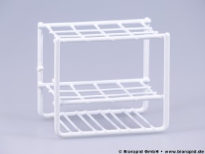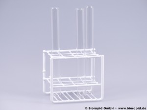 Kunststoffbeschichtetes Metallgestell für 12 (3 x 4) Reagenzgläser bis 18mm Ø.